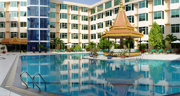 Located only ten minutes from the airport, the Phnom Penh Hotel offers a safe and comfortable accommodation with all modern luxury. The 4-star Phnom Penh Hotel is a choice accommodation among business travelers to Cambodia who want to stay in a safe business district, yet still be able to experience the charms of traditional Cambodian lifestyle. Several embassies, commercial banks and government offices are within close distance of the hotel, as are historic colonial mansions and Khmer-style pagodas. The well-maintained gigantic swimming pool, which stays open until late, is a favorite retreat from the hot and humid air amongst guests at the hotel. Making a booking at Phnom Penh Hotel is easy with our secure online form; just enter your dates and click.