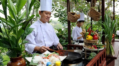 Dine tonight at the private ‘garden house’ known locally as ‘nha vuon’ of one Hue's most famous architects. This traditional style house, which is set in a large and attractive formal garden, has connections with the ancient Hue Royal Imperial Court. The traditional architecture has long been associated with the natural environment and the ancient belief of ‘feng-shui’. On arrival you’ll be greeted in the foyer of this magnificent house with a traditional Vietnamese welcome. The lady of the house will personally prepare an extraordinary Vietnamese meal which is served privately in the traditional manner in the private gardens of her home.