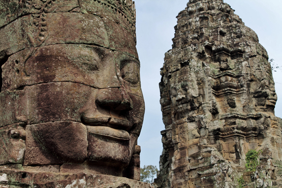 In the morning we visit Angkor Thom include first the South Gate of Angkor Thom, Bayon, and Ta Prum temple and has nearly disappeared into the jungle.