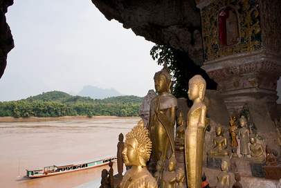 Upon return to Luang Prabang we board our private boat for a pleasant and scenic cruise up on the Mekong River to the mysterious Pak Ou Caves. These caves are an ancient pilgrimage site and contain thousands of gold lacquered Buddha images left there over hundreds of years.