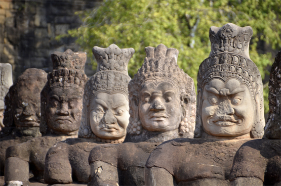 In the afternoon, visit the ancient temples of Wat Athvea Pagoda and give special alms to the monks. Then visit the South Gate of the ancient capital Angkor Thom (12th century) with its huge statues depicting the churning of the ocean of milk and cycle to Bayon Temple (unique for its 54 towers decorated with over 200 smiling faces of Avolokitesvara). After visiting the Bayon Temple, continue to the Terraces of Elephants and the Leper King, The Royal Enclosure, Baphoun, Phimeanakas.
