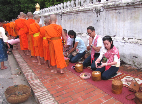 Early this morning you depart from your hotel to see the monks gather for their morning alms. You will join along with the local people giving alms to the monks. The custom of alms gathering is an ancient monastic tradition where the monks or nuns, who may not beg, stand quietly with their alms bowl visible allowing interested people to approach and offer food - if so inclined.