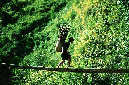 Early depart from Dien Bien Phu heading for Son La. The road crosses two mountain passes before the mountain scenery gives way to rice fields and banana plantations. Stop for a lunch break at Tuan Giao and walk over hanging bridges to visit Black Thai villages.
