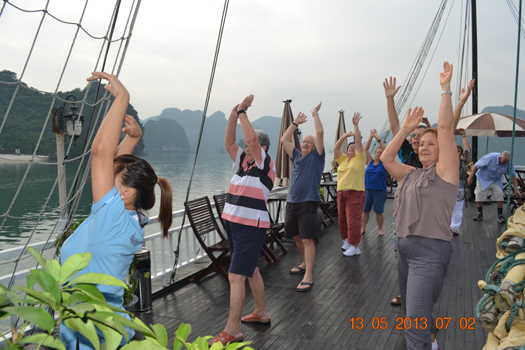 Greet the day with a morning Tai Chi exercise with an opportunity to view the sunrise over the bay. Sitting on the upper desk we can enjoy the breath - taking beauty of the rocky islands rising from the crystal-clear water of the bay. We can hear the birds singing, cicadas chirping ashore and the gentle lapping of the waves against our boat, the perfect soundtrack to accompany the fresh air and gentle breeze. International brunch buffet served in the restaurant. Check-out on board and disembarkation at boat port.