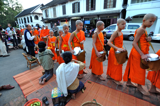 Worth getting up early in the holy city: early in the morning the monks move into your striking orange robes through the streets and are supplied by the citizens of rice and other food donations. We transfer to the serene Wat Sibounheaung; a nearly century old temple. Our guide will prepare offerings such as fruits, candles and incense sticks to offer to the monks before enjoying a morning blessing ceremony that is believed to bring health, happiness and longevity. Here you can learn more about a Buddhist monk’s life by interacting with a young monk. You will learn about the influence of Buddhism in daily local life. Transfer back to your hotel for breakfast.