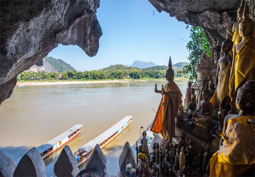 After breakfast we then enjoy a short-guided tour seeing the city’s oldest temple of Wat Sene and the magnificent Wat Xiengthong with its roofs sweeping low to the ground, which represents classical Laotian architecture and we then board a cruise upstream on the Mekong river, which also gives us a panorama view of the tranquil countryside as well as an interesting visit to the mysterious of Pak Ou Caves, two linked caves crammed with thousands of gold lacquered Buddha statues of various shapes and sizes left by pilgrims. Along the way, we stop at the small village of Ban Xanghai, where the local rice wine is distilled.