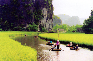 Have breakfast at hotel. We will drive to Ninh Binh province (95 km) to visit Tam Coc - is known as Halong bay on the rice fields, the same limestone rocks as in Halong bay but seen from a winding stream through paddy fields instead of the sea. Upon arrival, we will take a sampan ride through a karst landscape to visit Tam Coc grottos. The sampan rower will drive the boat through shallow rice paddies and three splendid long grottos. From here we will visit a small temple, built in 13th century.