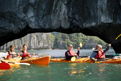 Upon arrival in Halong. Check-in between 11:30 - 12:00 at the boat port. Enjoy a refreshing “Welcome cocktail” upon check-in on the sun deck. Enjoy your lunch as the vessel sails to Halong Bay passing the Fighting cocks islet, the Elephant leg islet, the Castle islet, the Soi Sim island. Arrive at Surprise grotto - one of the most famous grotto in the entire Halong, we will visit the cave by Tender. After taking a lot of photos and admire the beauty of the cave we will visit the fishing village by local rowing boat with the opportunity to interact with fishermen who have been living in the bay for almost three generations then we return to the vessel for free time at your leisure. You can swim in the clear emerald waters, soak up the sun over a cool beer on the top deck sun lounge or try your hand at some kayaking (your account) amongst the huge limestone outcrops that surround us. We retire to the junk and relax on the top deck and enjoy a refreshing drink from the bar. Enjoy and learn the Vietnamese cooking demonstration on the sundeck. Your delicious seafood dinner will be served at the restaurant. Stay overnight on cruise for a more in-depth experience.
