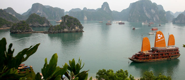 The second of the “Three Sisters” operated by Heritage Line in Halong Bay is the gracious middle-child, Jasmine. Visitors looking for both comfort and adventure in Halong Bay will appreciate the Jasmine’s friendly crew and understated elegance. With 24 cabins, the Jasmine is built in the style of a traditional Vietnamese junk, with three tawny sails and dark wood-cladding.