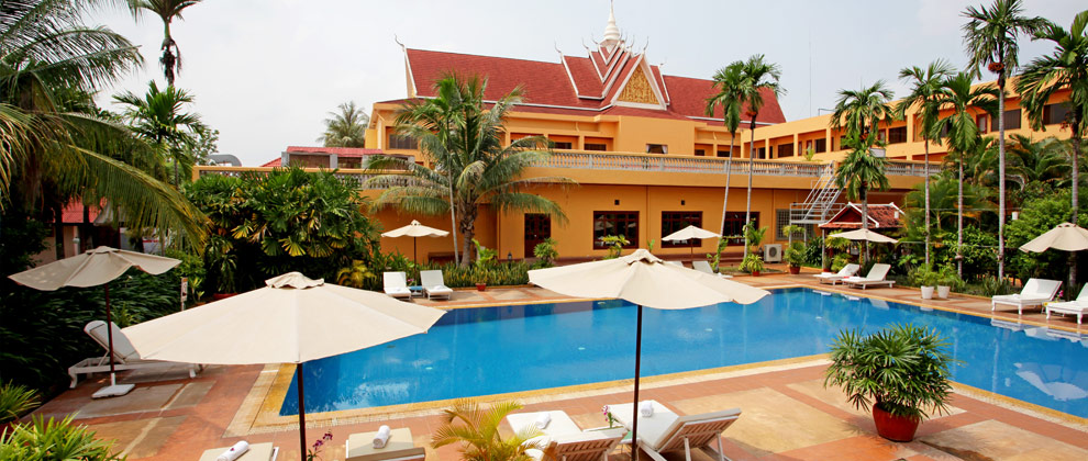 Ideally located in the heart of Siem Reap, Angkor Hotel is easily accessible to the temples of Angkor as well as to shopping center, restaurants, and entertainment venues. The Siem Reap International Airport is only 8-minute drive away - See more at: http://www.angkorhotel.net/location.html#sthash.0MEqWCDb.dpuf