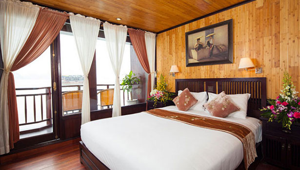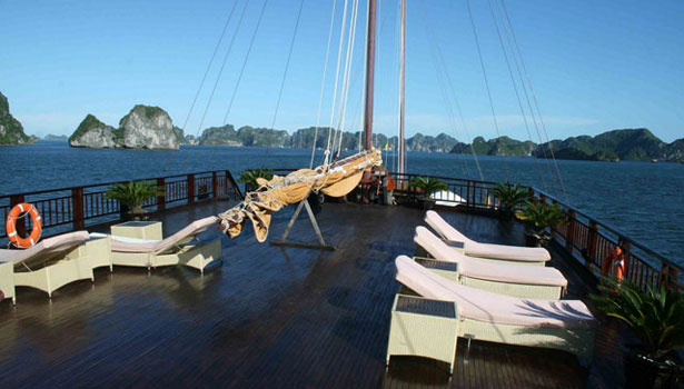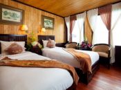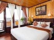 The second of the “Three Sisters” operated by Heritage Line in Halong Bay is the gracious middle-child, Jasmine. Visitors looking for both comfort and adventure in Halong Bay will appreciate the Jasmine’s friendly crew and understated elegance. With 24 cabins, the Jasmine is built in the style of a traditional Vietnamese junk, with three tawny sails and dark wood-cladding.