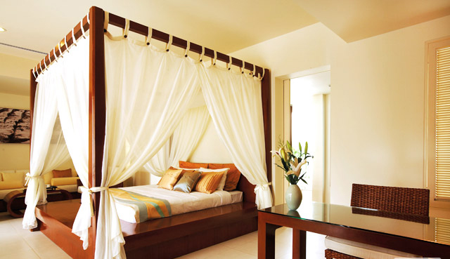 All 18 Princess Villas feature a privateoutdoor plunge pool and open-air bathtubwith separate rain shower room in the guestvilla that has four poster King-size beds.They are 100 m2 overall (villa and veranda).