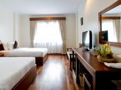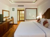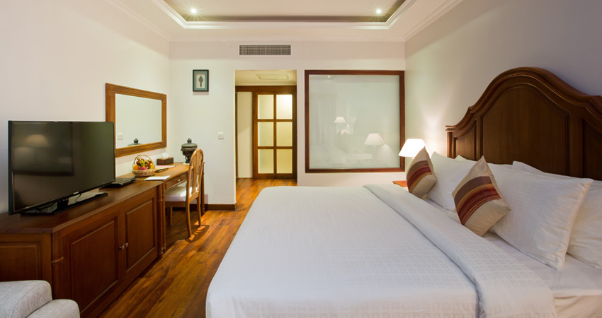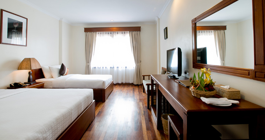 Saem Siemreap Hotel is equipped with premium room amenities and facilities and services, according to Hotel Five Star Standard. Its elegant and unique Khmer architecture is boosted with cool and fresh air, flower fragrance and a salt-water pool at the center. Every service point is just a few steps away to give its residents perfect convenience in a relaxed atmosphere.