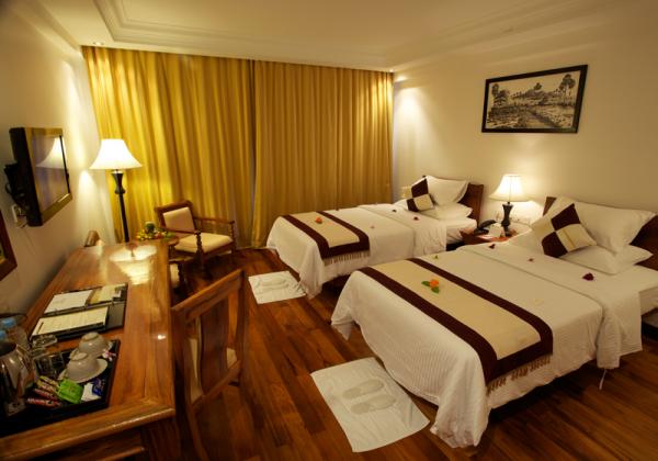 170 elegantly designed and well-furnished guest rooms, each with balcony, provide an atmosphere of tranquil elegance. Perched with balcony on the west side are Superior Rooms where you will enjoy the panoramic view of Siem Reap City and by the east side are Deluxe Rooms where the pool and lush garden view awaits you. There are 3 Grand Suite for virtual royal accommodation indeed.