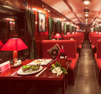 Indulge yourself in our dining carriage, “Le Tonkin”, where you can savor the delights of traditional Vietnamese and Western cuisine. Our talented Chef has selected the best wines, adding a further exquisite touch to a memorable experience. Discover our 4-course set menus!