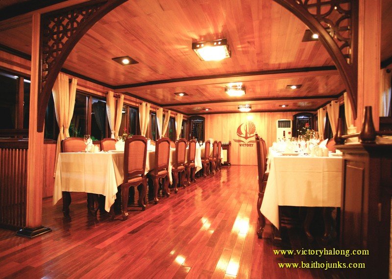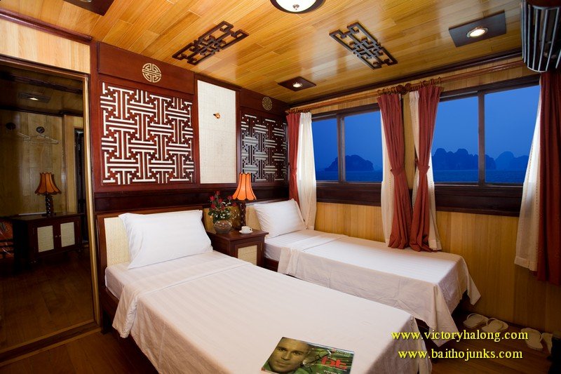 Designed by a Junk Carpenter, Victory Cruise is made of Tropical wood, equipped with modern facilities and valorized by a high fine art decoration. Offering 21 cabins, Victory Cruise is THE ideal support for you to relax and enjoy natural beauty of Ha Long Bay.