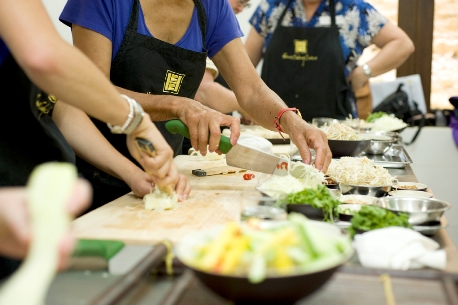 Depart from your hotel early to meet Chef Duc at Hoi An Market at 0800 to choose some of the ingredients that will be used in the day’s lesson. Duc will introduce the various ingredients on sale at the market that he uses in his cooking as well as his favourite produce. The fish section (not for the faint hearted as the smell can overwhelm) is a hive of activity and it’s fascinating to see the range of seafood on offer. After visiting the market stroll through the ancient streets of Hoi An to Mango Mango Restaurant where the hands on cooking class will take place. Learn how to season and make Duc’s signature dishes: Lust in Translation: tuna rolls double layered with nori and rice paper sheets served crispy and topped with yogurt, passion fruit, and mint, Pearl of Vietnam Sea: large prawns battered Japanese-Vietnamese Style tossed in with onion, green bell pepper, garlic, and butter, Mangnum Opus: blue fin tuna steak seasoned in garlic, onion, ginger, basil, sesame seeds, pan seared and served with mango salsa. Following the class sit down to enjoy your creations!