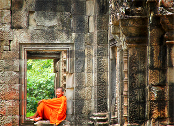 Wake up early to observe the monks at Wat Roun perform their morning rituals, and you will have many chances to meet the monks personally. Enjoy a local breakfast under the shade of a bodhi tree as the sun starts to rise. Next we head to Phnom Bok hill to enjoy magnificent views of the area. Trek downhill to the temple of Banteay Samre for a break.